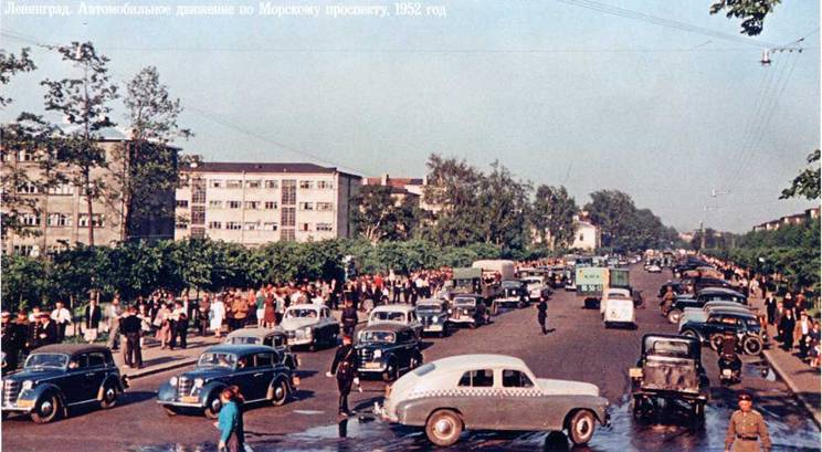 Ленинград. Автомобильное движение по Морскому проспекту, 1952 год.