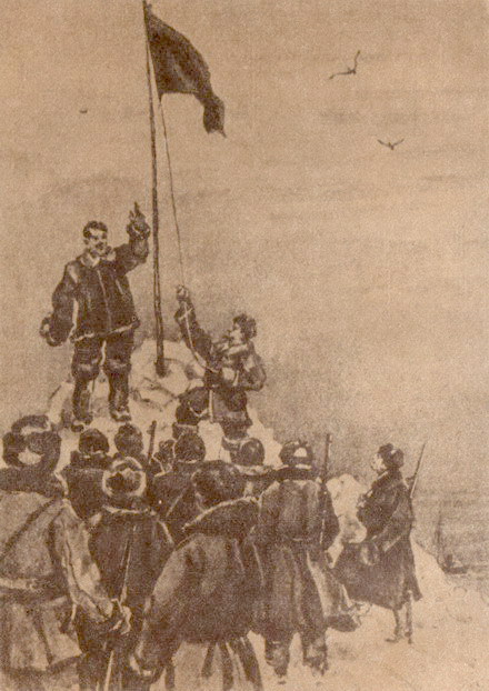 Назбиравши каміння, моряки виклали з нього високу піраміду і зверху встановили флагшток.